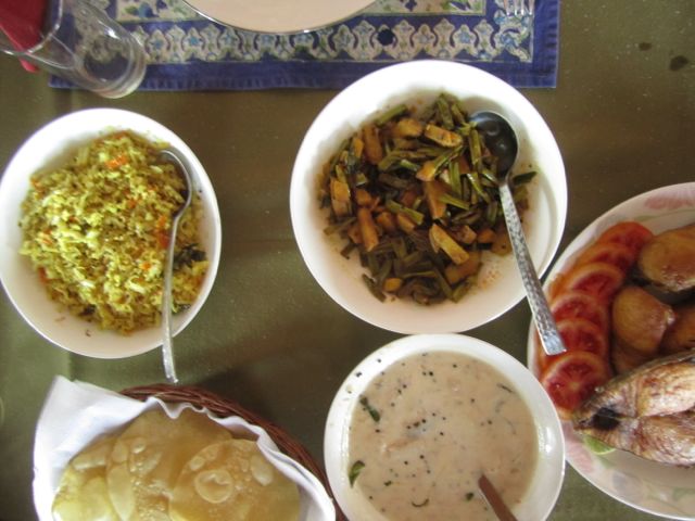 How to cook a perfectly delicious meal on a houseboat Posted on March 20, 2014March 20, 2014 As we cruised the waters of the Vembanad lake, I went to investigate my most favourite place. The kitchen. That’s where all the action is, after all. Joji, one of the 3 staff members on the boat, was busy frying something that looked fishy. And he confirmed my suspicions by identifying it as seer (or king) fish. The rest of our lunch was already done. Seer fish being fried by our chefLuckily, I took to Kerala cuisine, like a duck takes to water. On an earlier trip to Kerala (details shall be withheld to protect offending party!) we were so busy eating all kinds of delicacies, that we didn’t make it in time for our flight out (also the first time in my flying history, I’ve missed one!). Fried seer fish for our lunch on the houseboatOn another trip with my sister and mom we had some really delicious fare, especially on our houseboat ride. Even my very hard-to-please mother was satisfied enough to give the chef some brownie points. An array of delicious fare including chicken fry, dal, tomato/onion relish and karela fry (bitter gourd)I also realised that I am quite easy to please since since I’m very fond of coconut. Lately, the sister (also a former chef) has been extolling the virtues of coconut oil. And telling the whole family to adapt to it. Considering ours is an Assamese family, and we are addicted to our mustard oil, you can imagine that convincing my mother hasn’t an easy task. Needless to say, she hasn’t succeeded on that front, but I’m already swayed by the goodness of this pure oil. I haven’t really done much research on it myself (sis has done enough for the whole family), but some factors indicate that it’s better than refined oil and also good for health. And that people in countries populated by coconut trees and who consume copious amounts of coconut oil are healthier. Interesting that though I don’t have statistics. Delicious chutney with pineapple and lots of garnishYou see, in God’s own country, you can’t really go more than a few meters without encountering a coconut in one form or another. It’s in your food, your oil, your soap, and of course, in every frame. Imagine what your friends would say if you went back from Kerala without those sinful banana chips fried in coconut oil. A variety of different chutneys including a beetroot pachadi (extreme left)There must be more coconut trees in Kerala than in the rest of the world combined. Though I was told that there are absolutely no coconut related deaths in Kerala – a local told me this confidently. And yes, I have my doubts about this one. Coming back to our houseboat, we’re on a cruise – possibly the most relaxing time we’ve had in Kerala so far. The Kerala Blog Express team has been split up into several groups. I am with two lovely women – Roxanne (aka The Tiny Taster from Mumbai) and Stefania (Dutch, but now residing in Malaga, Spain), who writes about life from an expat’s perspective. Roxanne loves food as her blog name suggests and takes pictures of everything before we partake of the delicacies. We’re all happy to finally get an opportunity to let our hair down and just relax – this time was much needed since we’ve been on the move since we arrived in Trivandrum. We are travelling in style. This is our dining area on the houseboat.We sit on the deck of our boat enjoyed the cool air as we made our way through the waters. Watching life pass in slow motion in front of us. Someone is making their way across to the other side in a smaller row boat. Another one is loaded with a cycle. A lady whipping her clothes on the lake shore and finishing her daily dose of laundry. A little kid bathing happily in the waters beside her home. It’s like watching a different kind of TV – daily life TV maybe. The houseboat lunch has to be the most delicious so far in this trip. It could also be because it’s the closest to home cooked food, which I usually prefer when I travel. Most of my sojourns include homestays (something I’ve missed on this trip) because that’s where I get to taste the best local food. A simple but yummy cabbage fry with onions, mustard seeds and coconut (but, of course!)This is what we got on our plate for lunch: – A long beans sabji (vegetable fry) – A cabbage fry (with my favourite ingredient, coconut) – Sambar – Seer fish fry – Red rice So much food. So little time.The stir fries are simple, and usually cut into small bits. Like the cabbage. And garnished with black mustard seeds and coconut. This style of preparation is called a “thoran“. And since this post is about cooking up a delicious meal, here’s the recipe a cabbage thoran you can try at home. It seems really simple! Before this particular culinary treat, we were actually treated to our first traditional meal on another houseboat cruise, organised by Hotel Raviz, Kollam. They had put out an elaborate meal as we cruised the backwaters and and these were some of the delicacies I remember: – Fried prawn (really succulent and the best I’ve had so far on the trip) – Thalassery mutton biryani – Roast chicken (not sure which style, but was quite good) – Meen moilee (coconut preparation – loved it!) – Loads of pickles/raitas and sides like beetroot pachadi, crisp fried bitter gourd, pineapple raita and other chutneys that I didn’t take note of – Appams with vegetable stew There were also a few traditional vegetarian dishes, which I didn’t pay much attention to since there was prawn and fish 🙂 Eating our way through Kerala – it’s a tough job, you know!I think I must have been a Keralite in my last birth since I can’t seem to get enough of coconuts. Curries, chutneys, water, drinks – bring it on! Except in my hair. I realised after two days of trying to wash it out after a rather relaxing Ayurvedic massage at the Kumarakom Lake Resort. Anyway, I must admit that I haven’t 